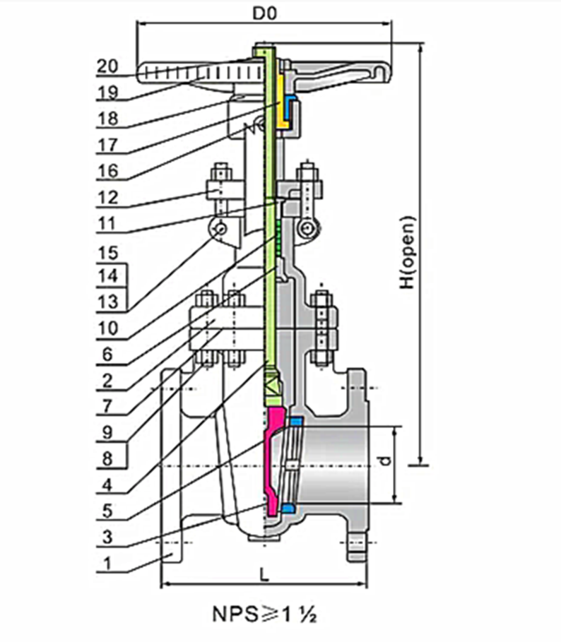Dan roda tangan berputar untuk memacu batang injap untuk berputar, dengan itu mengangkat